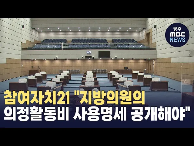 참여자치21이 "지방의원들의 의정 활동비 사용 명세를 공개하라"고 촉구했습니다. 단체는 "광주시의회와 5개 구의회는 의정 활동비를 새로운 상한액까지인상하는 것으로 결정했지만 이 과정에서 누구도 근거를 제출하지 않았다"고 비판했습니다.그러면서 "의정 활동비는 실비보상적 성격의 경비지만 아무런 정산 절차나 증...