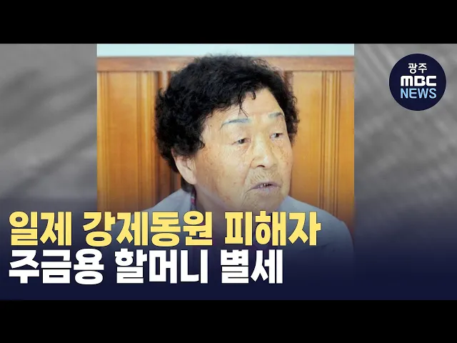 일제 강제동원 피해 당사자인 주금용 할머니가 향년 96세로 별세했습니다. 주 할머니는 지난 지난 1942년 2월 근로정신대로 끌려가 일본 후지코시사에서 임금을 받지 못한 채 군수품을 제작하는 데 동원됐습니다. 주금용 할머니를 대신해 강제동원 시민모임이 후지코시사를 상대로 광주지법에 제기한 손해배상 청구 소송은 ...
