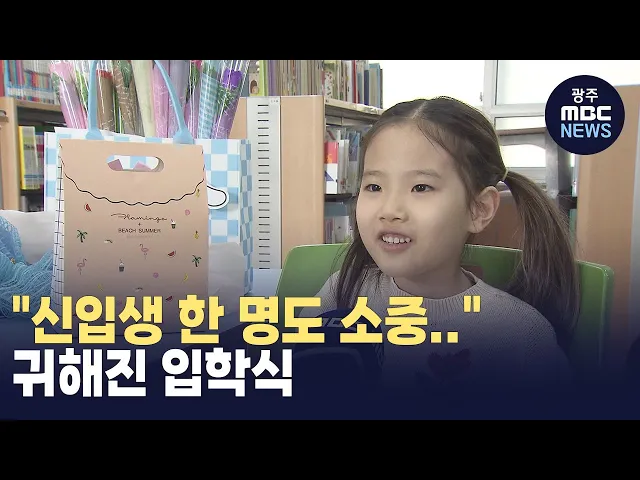 (앵커)저출산 고령화 위기 속에서 신입생이 없어입학식을 열지 못하는 학교도 있는데요 여수 농어촌의 한 학교는 신입생이 단 한 명이라특별한 입학식이 됐다고 합니다. 최황지 기자가 다녀왔습니다. (기자)"신입생 입장! 어서와"선생님이 입학생을 소개하자 재학생들은 큰 박수로 후배를 반깁니다. 부모님의 손을 꼭 잡은...