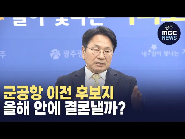(앵커) 강기정 광주시장이 군공항 이전 후보지역을올해 안에 결론을 낼 것이라고 밝혔습니다.사실상 군공항 이전에 대한 기한을 정한건데요. 일단 강기정 시장과 김 산 군수가먼저 만나야할텐데 이게 미지수입니다.보도에 김영창 기자입니다. (기자)강기정 광주시장이 올해 안에 반드시 군공항 후보지 선정에 대한 결론을 ...