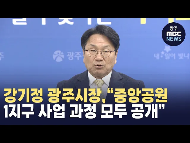 강기정 광주시장이 중앙공원 1지구 민간공원 특례사업과 관련해"사업 추진 과정을 모두 투명하게 공개하겠다"고 밝혔습니다.강 시장은 오늘(27일) 기자간담회에서 "중앙공원 1지구 개발 사업의 목적은 아파트 공급이 아닌 공원을 지키는 것"이라며 "해당 사업자 측과의 '선분양 전환 협의' 모든 과정이 담긴 용역중간결과와...