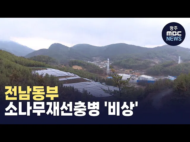 (앵커)전남동부지역을 중심으로 소나무 에이즈로 불리는 재선충병이 확산하고 있습니다. 당국이 이미 감염됐거나감염이 우려되는 소나무에 대한 긴급 방제에 나서면서 소나무재선충병 확산 저지에 비상이 걸렸습니다김주희 기자가 보도합니다.(기자)여수시 소라면의 한 야산입니다. 산 속 울창한 소나무들이 누렇게 말라...