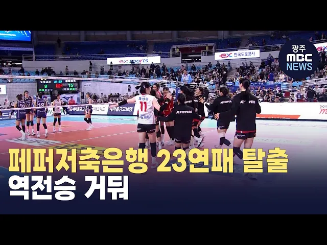 여자 프로배구 페퍼저축은행이 23연패 끝에 승리를 거뒀습니다. 페퍼저축은행은 어제(23) 열린 한국도로공사와의 경기에서 두 세트를 내주면서 출발했지만 3세트와 4,5세트를 내리 따내 3대 2로 역전승을 기록했습니다. 여자부 역사상 최장 기록인 23연패의 불명예를 안았던 페퍼저축은행은지난해 11월 10일 GS칼텍스 전 이...