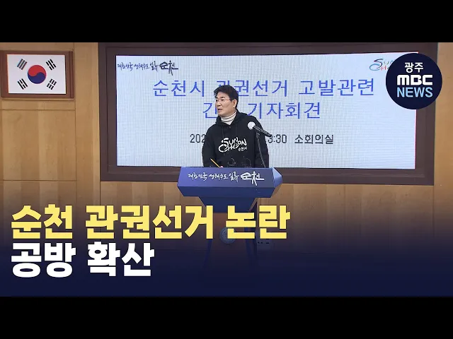 (앵커)순천에서는 출마한 일부 후보들이관권선거 논란을 제기하며 시끄럽습니다.이에 대해 노관규 순천시장이의혹을 제기한 후보들을 겨냥했는데또 다른 논란으로 번지고 있습니다.문형철 기자입니다. (기자)관권선거 의혹에 대해기자회견을 자청한 노관규 순천시장.현직 통장 등이불법 선거운동을 한 정황이 있다며소병철,...
