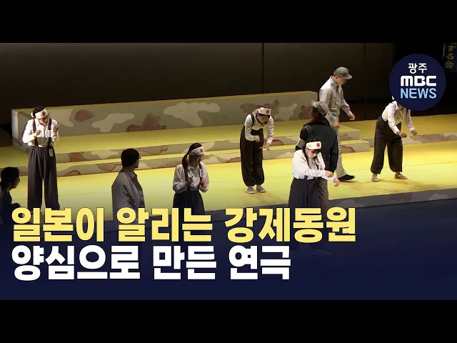 (앵커)1940년대 일본 군수공장 미쓰비시에강제동원돼 고초를 당했던 피해자들.이제는 고령이 됐지만, 미쓰비시에 배상은커녕사과 한마디조차 듣지 못했습니다.일본인들이 이들이 싸워온 긴 시간을연극으로 만들어 선보였는데,해외 공연으로는 광주가 처음입니다.임지은 기자가 전해드립니다. (기자)머리에 두건을 두르고 강...
