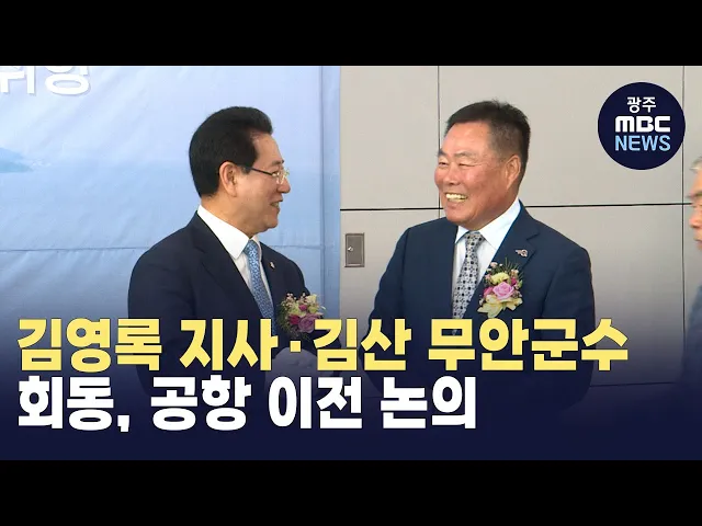 김영록 전남지사와 김산 무안군수가광주 민간*군공항 이전 문제를논의하기 위해 회동했습니다.김영록 지사와 김산 무안군수는어제(21) 저녁 무안의 한 식당에서 만나그동안 광주시가 공항 이전 문제를일방적으로 추진해온 점에 유감을 표명하고무안국제공항 활성화와 광주공항 이전 문제등을 논의하기 위한 실무추진단을운...