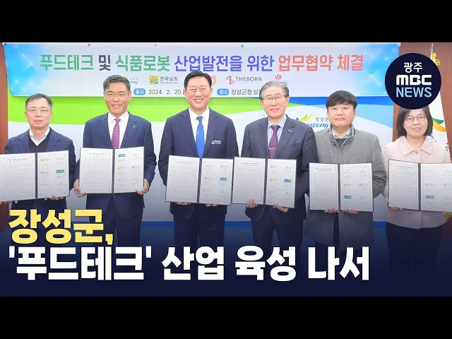장성군은 최근 전남도와 광주과학기술원, 더본코리아 등과 '푸드테크 산업’ 육성을 위한 업무협약을 체결하고, '식품로봇연구지원센터' 유치에 나선다고 밝혔습니다.식품로봇연구지원센터로 선정되면 3년간 최대 105억 원의 사업비을 지원받을 수 있습니다.#장성군 #푸드테크 #식품로봇연구지원센터