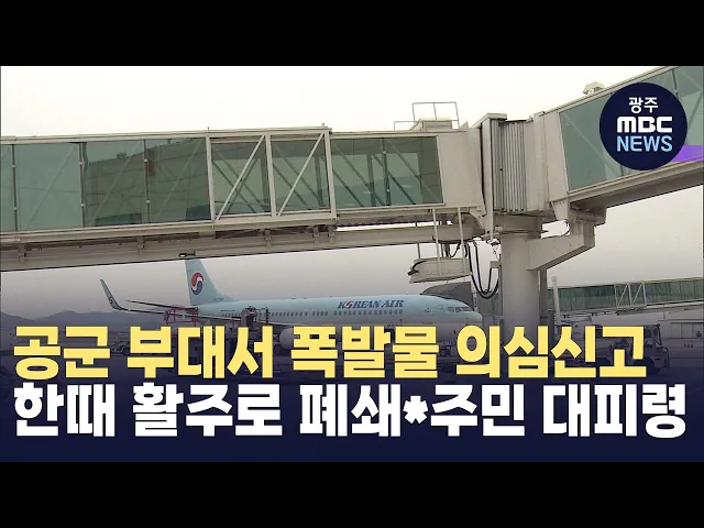 광주 공군 기지 우체국에서 폭발물 의심 물체가 발견돼한 때 공항 활주로가 폐쇄되고 인근 주민들에게도 대피령이 내려졌습니다.광주공항 등에 따르면 오늘 오후 1시 30분쯤,공군 제1전투비행단 복지관 내 우체국에 수상한 우편물 상자가 발견돼 광주 민간공항과 군공항 활주로가 2시간 가량 폐쇄되고,인근 초등학교와 주민...