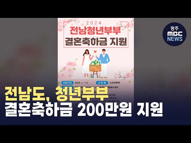 전남도는 청년의 결혼 초기 경제적 부담을 덜어주고 지역정착을 위해 백억원 규모의 청년부부 결혼축하금을 지원합니다. 대상은 49세 이하 부부 가운데 혼인신고 후 6개월이 지나면 신청할 수 있는데, 주소지 관할 읍면동 행정복지센터에서 신청하면 축하금 200만원을 받을 수 있습니다. 도는 올해부터 결혼축하금 신청기...