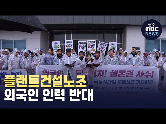 (앵커) 전남 동부권은 대규모 산단과 제철소가 있어 공장을 만드는 플랜트건설 산업에 종사하는 노동자들이 많습니다. 최근 정부가 플랜트건설에 외국인 인력 도입을 추진하고 있어, 지역에서도 반대의 목소리가 커지고 있습니다. 최황지 기자의 보도입니다. (기자)"외국 인력 도입 논의를 즉각 중단하라"전국플랜트건설노...