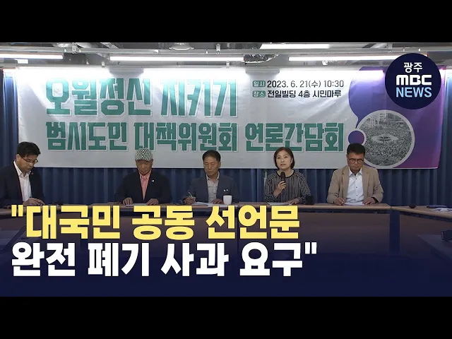 광주 시민단체가 5.18단체와 특전사동지회 사이에 맺어진 대국민 공동 선언문에 대한 파기와 사과를 재차 요구했습니다. '오월정신 지키기 범시도민 대책위원회'는 입장문을 내고 '공동 선언문이 발표된 후 1년 동안 오월정신의 폄훼와 왜곡, 과도한 당사자 주의에 대한 강력한 투쟁을 전개해 왔다'며, 앞으로도 공동 선언...