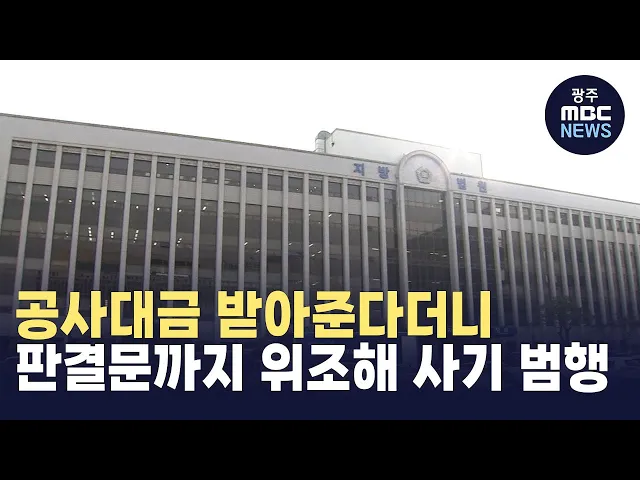 못 받은 공사대금을 대신 받아주겠다고접근해 수 억원을 가로채고 이 과정에서법원 판결문까지 위조한 혐의로 기소된50대에게 실형이 선고됐습니다.광주지법 형사12부 김상규 판사는공사대금을 받지 못한 업체 대표에게채권 회수를 돕겠다고 접근해경비 명목으로 8억 9천여만원을받아 챙긴 혐의로 기소된50대에게 징역 4년...