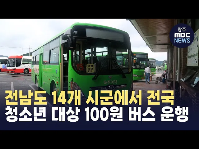 올해부터 전국의 모든 청소년이 전라남도 일부 지역에서 100원만 내면 버스를 이용할 수 있게 됐습니다. '청소년 100원 버스' 도입 지역은 담양과 보성, 화순 등 모두 14개 시군입니다. 청소년이 해당 지역에서 교통카드로 시내버스 등을 이용하면, 거리에 상관없이 무제한으로1회 이용할 때마다 100원이 차감됩니다.