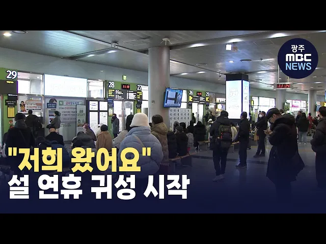 (앵커) 4일간의 설 연휴를 앞두고 명절 분위기가 고조되고 있습니다.하루 빨리 광주를 찾은 시민들의 표정은 어느때보다 밝았습니다.명절 귀성길 모습을 천홍희 기자가 취재했습니다.(기자)할머니가 멀리서부터 한달음에 뛰어옵니다.오랜만에 서울서 고향을 찾은가족들과 만납니다.가만히 보고만 있어도 웃음꽃이 피고 조금...