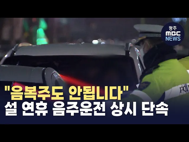광주경찰청과 자치경찰위원회가설 명절 연휴 음주운전 상시 단속을실시합니다.경찰은 설 연휴 분위기나음복주 섭취 등으로음주운전하는 사례가 끊이지 않는다고 판단,올해 설 연휴 기간동안단속을 펼치기로 결정했다고 밝혔습니다.가용경력을 총동원해식당과 이면도로 등에서시간과 장소를 수시로 변경하며단속을 실시할 예...