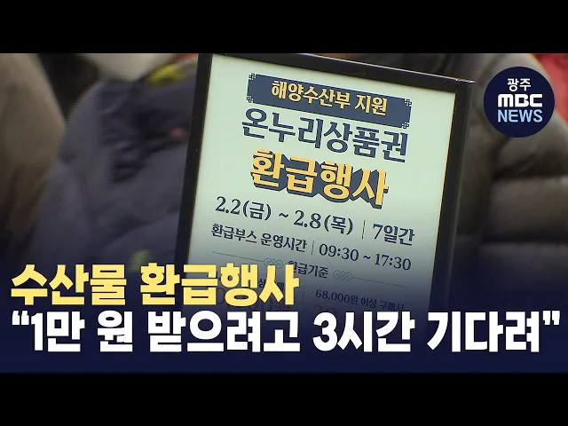 (앵커)해양수산부가 마련한 수산물 환급행사 때문에 경남 마산 어시장과 수산시장에 고객 수천 명이 몰렸습니다.하지만 주관 기관의 준비 부족으로 수많은 시민들이 추위 속에 오랜 시간을 기다려야 했습니다.MBC경남 장 영 기자가 보도합니다.(기자)마산어시장 고객센터 주변에 한 줄에 두세 명씩, 긴 줄이 생겼습니다.한...