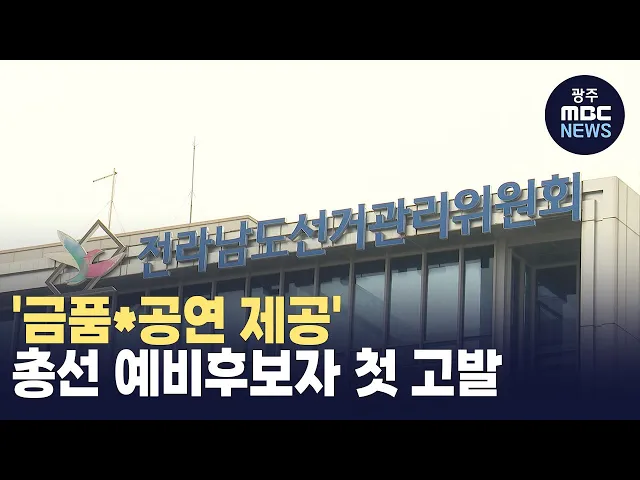 전라남도선거관리위원회는 제22대 총선을 앞두고 선거운동과 관련한 금품과 공연을 제공한 혐의로 전남지역 총선 예비후보자 1명을 검찰에 고발했습니다.고발된 예비후보자는 지난달 초 대담 형식의 행사를 개최하면서 선거공약을 발표해 사전선거운동을 했으며 행사 개최비용을 이벤트 업체에 지급함으로써선거운동과 관...