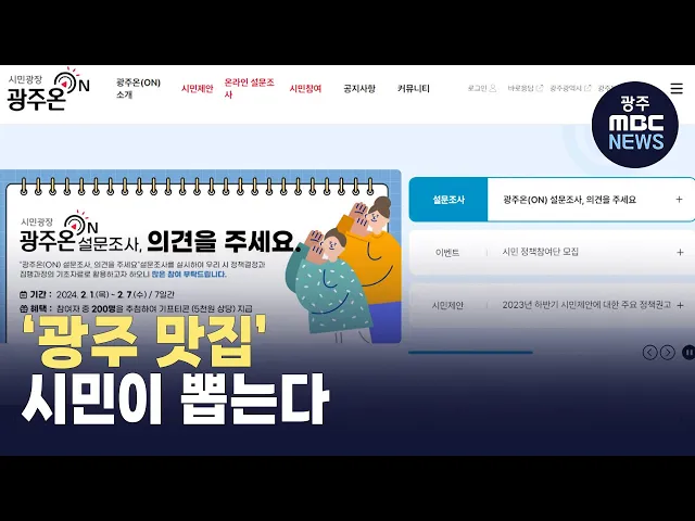 광주시가 '광주 맛집' 선정을 위한 시민 온라인 설문조사를 5일부터 실시합니다.시민 누구나 '광주온'에 접속해 가게명과 이유 등을 작성할 수 있으며, 향후 설문조사와 전문가 평가를 거쳐 최종 30곳이 선정됩니다. 광주 맛집으로 선정되면 지정패 수여,광주시가 작성한 맛집지도 등에 담기며다양한 경영컨설팅도 받을 수 ...