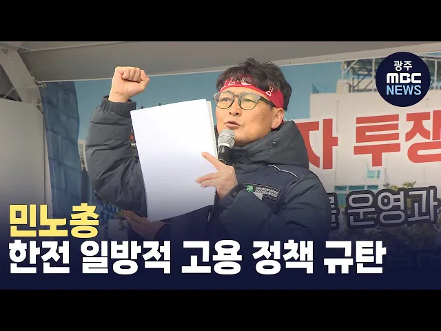 민주노총 건설노조 전기분과위원회가 오늘(1) 오전 한국전력공사 앞에서일방적인 고용 정책 등을 규탄하는 집회를 열었습니다. 이 자리에는 한전 협력업체 등주최측 추산 150여 명이 모여,한전이 업체들과의 계약을많게는 절반까지 축소하려 한다며,생존권의 위협을 받게 됐다고 주장했습니다. 또, 어제(1월 31일) 신안에서...