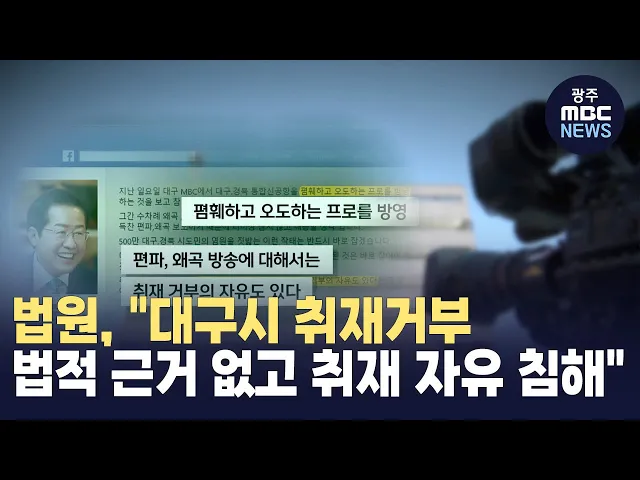 (앵커)자신에 대한 비판 보도를 문제 삼으며 대구MBC에 대한 취재거부를 선언한홍준표 대구시장의 상황을 그동안 광주에서도 전해드렸는데요. 대구문화방송이 이런 취재거부 조치가 부당하다며 법원에 판단을 내려달라고 했는데오늘(31일) 법원이 대구시의 취재거부 조치가 부당하다며 대구MBC의손을 들어줬습니다. 대구문...