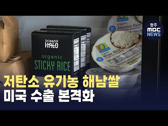 (앵커)저탄소 유기농으로 재배한 해남쌀이 미국 수출길에 오릅니다.미국 유기농 유통업체와 수출 협약을 체결하고, K푸드의 인기를 타고 냉동김밥 시장에도 진출할 예정입니다.신광하 기자가 보도합니다.(기자)김밥과 김치 등 K-푸드의 열기 속에 최근 미국에서 남도음식 홍보행사가 열렸습니다.김밥의 재료인 쌀과 채소, ...