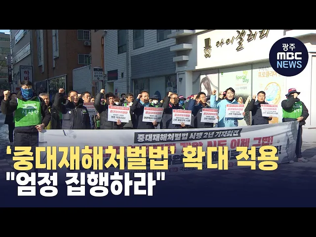 중대재해처벌법이 내일(27일)부터 확대 적용되는 가운데민주노총 광주본부가 엄한 집행을 촉구했습니다. 민주노총 광주본부는 오늘(26일) 국민의힘 광주시당 앞에서 기자회견을 열고"정부는 50인 미만 사업장에 대한 중대재해처벌법 적용과 관련, 엄정 집행과 함께 획기적이고 근본적인 예방대책을 마련해야 한다"고 주장했...