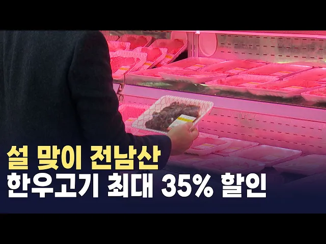 설을 맞아 전라남도가 다음달 14일까지 한우 가격 안정을 위한 대대적 할인행사를 추진합니다. 지역 축협 하나로마트와 한우 광역브랜드, 온라인 쇼핑몰 '남도장터'를 통해 참여할 수 있는 이번 행사에서는 한우 1등급 이상 구이용과 정육, 선물 세트 등의 품목을 최대 35% 할인해 판매합니다.