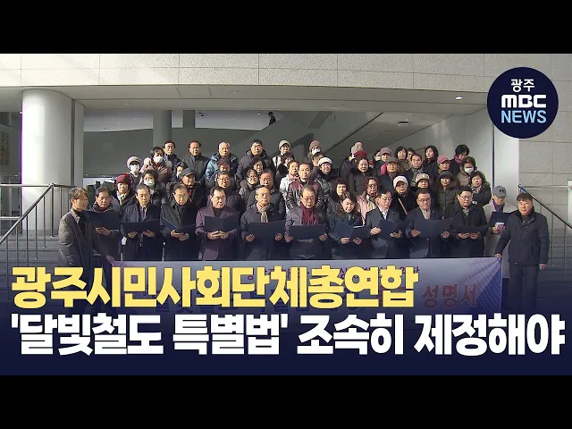 광주시민사회단체총연합이 '달빛철도 특별법'의 조속한 제정을 촉구했습니다. 단체는 기자회견을 열고 "달빛철도는 남북 수도권 중심의 왜곡 변형된 국토 불균형을 동서 균형이라는 획기적 구도로 전환시킬 국민 숙원 정책"이라고 주장했습니다. 그러면서 "예비타당성조사 면제 조항이 포함된 특별법이 통과될 때까지 대구...