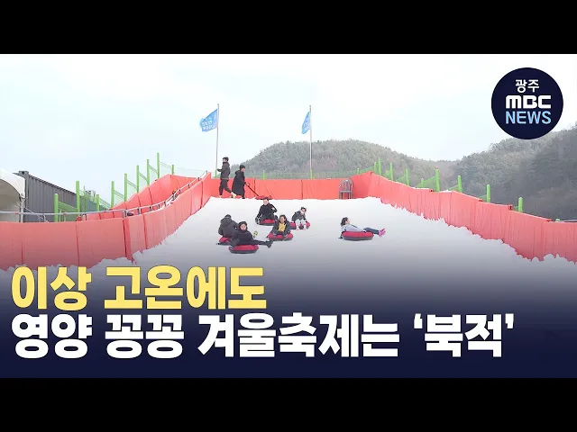 (앵커)올 겨울 이상 고온 현상으로 얼음이 얼지 않으면서, 전국 곳곳의 겨울축제가 잇따라 취소되고 있는데요.경상북도 영양군에서는 올해 처음으로 겨울축제가 열렸는데 관광객이 몰려 성황을 이뤘다고 합니다.안동문화방송 김경철 기자가 보도합니다.(기자)영양군에 있는 낙동강 지류, 반변천이 꽁꽁 얼어 빙상장으로 변...