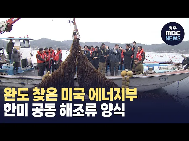 (앵커)3년 전 미국 항공우주국이 전남 완도 주변 해조류 양식장 인공위성 사진을 공개하면서 완도가 해조류 양식의 최적지라고 언급했었는데요이번에는 한국과 미국이 함께 추진하고 있는 해조류 공동 연구 개발을 위해 미국 에너지부 관계자들이 완도 현장을 찾았습니다.안준호 기자가 취재했습니다.(기자)미역과 김 등 해...