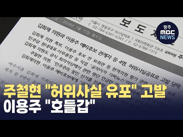 민주당이 가짜뉴스라고 밝힌 하위 20% 의원 명단을 두고 지역 내 공방이 벌어지고 있습니다. 여수갑 주철현 의원은 현역의원 평가 하위 20% 명단을 문자 메시지나 SNS 등을 통해 불특정 다수에게 유포했다며이용주 후보 캠프 관계자 3명과 김회재 의원의 특보 등을 공직선거법 위반 혐의로 경찰에 고발했다고 밝혔습니다. ...