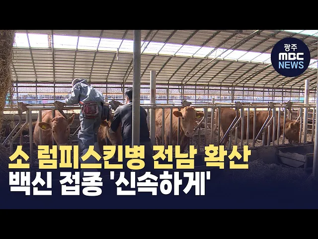 전남 무안에서 소 럼피스킨병이 확진되는 등전국적으로 확산 추세가 이어짐에 따라 정부와 지자체가 백신 접종을 최대한 서두르기로 했습니다.방역당국은 럼피스킨병이 확인된 무안 축산 농가에서반경 10킬로미터 이내 소 사육농장에 대해서 이동제한 조치를 내리고소독과 임상 예찰활동을 강화하고 있습니다.또 무안을 비...