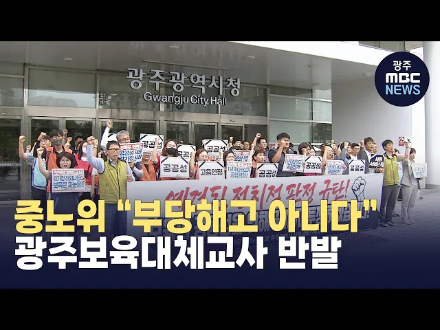 중앙노동위원회가 '광주 보육대체교사 부당해고가 아니다'라는 판정과 관련해 보육대체교사 노조측이 반발하고 나섰습니다. 민주노총 공공연대조합 광주시사회서비스원지부는 오늘(28일) 기자회견을 열고 "광주시 보육대체교사 부당해고에 면죄부를 준 중앙노동위원회를 규탄한다"면서 "사회서비스원 노동자들을 위해 끝까...