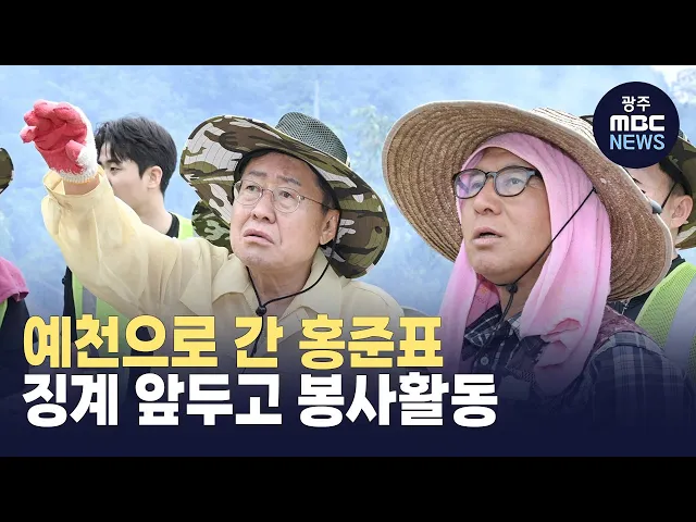 (앵커) 수해 중 골프를 친 홍준표 대구시장에 대해 국민의힘 윤리위원회 징계가 오늘(26일) 예고돼 있습니다. 그런데 징계를 앞둔 홍준표 시장이 지난 24일 예천의 수해 현장을 찾아 봉사활동을 시작했습니다. 징계를 의식한 보여주기식 행보라는 비판이 나옵니다. 대구문화방송 김은혜 기자입니다.(기자)경북 예천군 감천...