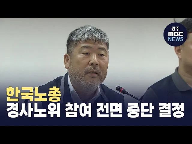 한국노총이 노사정 사회적 대화기구 참여를 전면 중단하기로 결정했습니다. 한국노총이 오늘 광양지역 지부에서 긴급 중앙집행위원회를 열고 오늘부터 경제사회노동위원회 참여를 전면 중단하기로 결정했습니다. 경찰이 지난달 말, 포스코 광양제철소 앞 7미터 높이 철탑에서 고공 농성중이던 한국노총 산하 금속노련 간부...