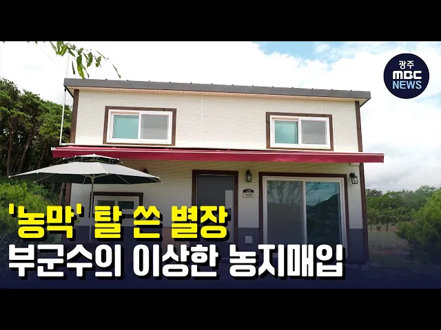 (앵커) 무안군 부군수의 이상한 농지 매입 현장이 포착됐습니다. 부군수가 부인 명의로 농지를 사들인 건데, 농사를 짓기 위한 것이란 해명이 무색하게 배산임수를 갖춘 별장으로 꾸며져 있었습니다. 박종호 기자가 취재했습니다. (기자)무안의 한 농촌마을. 작은 야산과 논 사이에 푸른 잔디밭이 펼쳐진 땅이 눈에 들어옵...