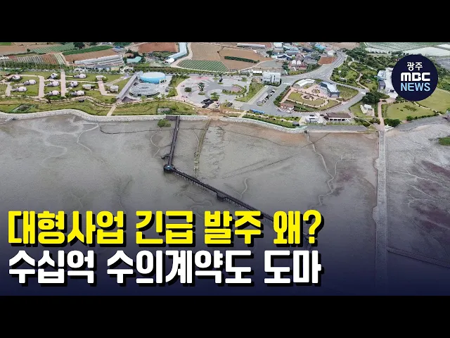 (앵커) 최근 관급자재 리베이트 수사로 곤혹스런 무안군이 또다른 대형사업을 긴급 발주한 사실이 뒤늦게 드러나 말썽이 일고 있습니다. 수십 억대의 관급자재 납품은 수의계약으로 이뤄졌습니다. 문연철 기자가 보도합니다.(기자) 우리나라 최초의 갯벌습지보호구역인 무안 황토갯벌랜드입니다. 무안군이 이 곳에서 바다 ...