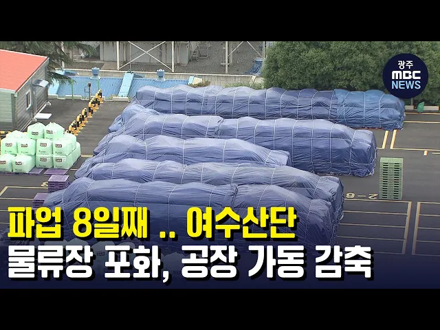 (앵커)화물연대 총파업이 오늘(14)로 8일째 이어지고 있습니다. 여수산단의 석유화학 기업들의 물류장은 제품을 출하하지 못해 포화 상태에 다다랐는데요. 생산을 해도 쌓아둘 곳도, 출하할 곳도 없어 공장 가동률을 감축하고 있습니다. 강서영 기자입니다. (기자)여수산단의 한 석유화학 제조기업의 야적장이 출하되지 못...