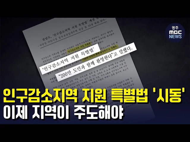 (앵커) 요즘 어느 지역 할 것없이 가장 큰 걱정거리가 되고 있는 최대 현안, 바로 인구감소 문제입니다. 지난달 말 '인구감소지역 지원 특별법'이 제정돼 대책을 찾아 볼 여지가 생겨 그나마 숨통이 좀 트인 셈인데요. 하지만 적극적인 자구 대책이 병행되지 않으면 효과를 보기 어려운 구조라는 분석이 나옵니다. 박광수 ...