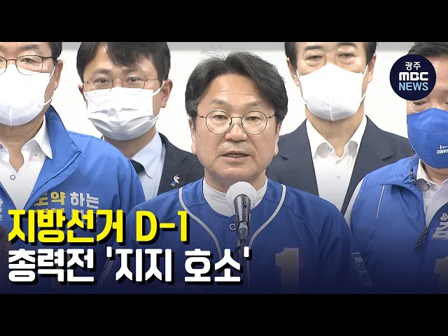 (앵커) 6.1 지방선거가 하루 앞으로 다가온 가운데 각 정당들은 마지막 지지를 호소했습니다. 민주당은 투표에 참여해 민선8기의 원동력을 높여달라고 목소리를 높였고, 다른 정당들은 민주당을 견제하겠다며 한 표를 호소했습니다. 송정근 기자입니다. (기자) 강기정 광주시장 후보 등 더불어민주당 광주지역 후보자들이 ...