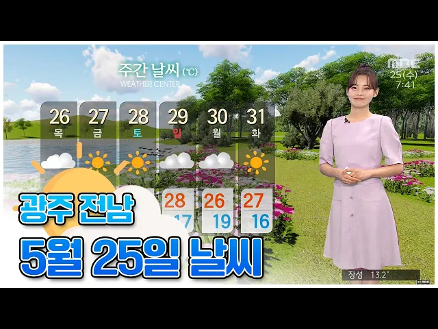요즘 날이 정말 덥죠 오늘도 어제만큼이나 덥겠습니다. 아침기온 16도를 넘어서 시작했고요 한낮기온 31도 까지 오르겠습니다. 광주를 포함해 오늘도 낮기온 30도를 웃도는 지역이 많겠습니다. 오늘도 자외선 차단 꼼꼼히 하셔야겠습니다. 더위와 더불어서 자외선 지수 매우 높음 수준까지 오릅니다, 낮동안 열기가 가득 ...