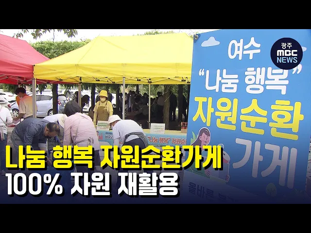 (앵커) 여수시가 기후변화 대응을 실천하는 생활 속 환경운동의 일환으로, 나눔행복, 자원순환가게 운영을 시작했습니다. 20개 품목을 대상으로 버려지는 쓰레기를 100% 재활용하는 방식인데, 시민들은 휴대전화 앱을 깔아 현금으로 돌려 받는 자원 재활용 생활화 실천 운동입니다. 최우식 기자가 보도합니다.(기자) 엇뜻 ...
