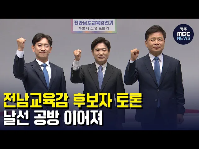 (앵커) 전남교육감 후보자 3명이 모두 참여한 토론회가 처음으로 열렸습니다. 청렴도와 학력 하락에 대한 책임론이 도마에 오르면서 예전 교육감 선거에서 찾아보지 못했던 날선 공방이 이어졌습니다. 김진선 기자가 정리했습니다. (기자)토론 시작부터 김대중 후보는 전남도교육청의 청렴도가 역대 꼴찌라며 현 교육감의 ...