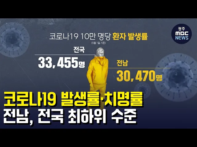 (앵커) 코로나19 확산세가 꺾이고 있는데요. 그동안 전남의 코로나 방역 성적에 대해 어떻게 평가하시나요? 환자 발생률과 치명률 모두 전국 최하위 수준으로 방역당국의 노력과 도민들의 적극적인 협조 덕분이었습니다. 문연철 기자가 보도합니다.(기자)지난 5월1일까지 집계된 전남지역 누적 코로나19 확진자 수는 55만8...