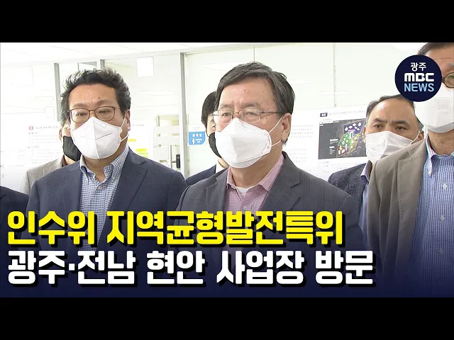 (앵커) 대통령직 인수위원회 지역균형발전 특위가 광주 글로벌모터스와 해상풍력 등 광주와 전남 현안 사업장을 찾았습니다. 차기 정부에서 호남 소외 우려가 현실화되고 있는 가운데, 지역 현안 사업이 국정 과제에 얼마나 포함될 지 시험대에 오르고 있습니다. 한신구 기자의 보도입니다. (기자) 전국 첫 노*사 상생형 일...