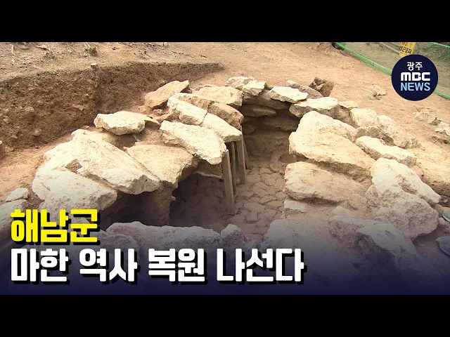 (앵커) 해남반도에서는 최근 마한의 중심세력이었던 신미국의 고분들이 대량 발견되는 등 마한의 주목할만한 유적들이 발견되고 있습니다. 해남군이 마한역사 복원 전담팀을 구성하고 마한 관련 문화자원 발굴에 적극 나서고 있습니다. 김 윤 기자가 취재했습니다.(기자) 해남군 현산면 읍호리 일대 야산에서 발굴된 고분들...