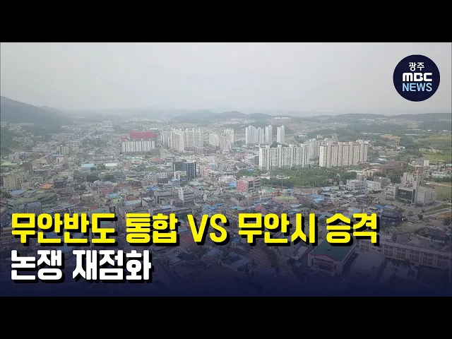 (앵커) 6월 지방선거를 앞두고 해묵은 무안반도 통합 문제가 또다시 쟁점으로 떠올랐습니다. 무안시 승격 사안과 맞물려 지역 간, 후보 간 공방이 치열해질 전망입니다. 문연철 기자가 보도합니다.(기자) 잠잠했던 무안반도 통합에 불을 지핀 것은 무안군수에 도전장을 낸 정영덕 전 전남도의원, 무안시 승격보다는 무안반...