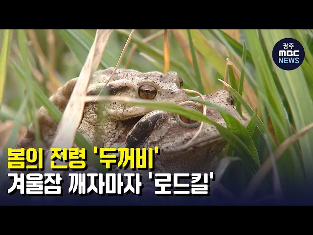 (앵커) 매년 이맘때가 되면 겨울잠에서 깨어난 두꺼비들이 자신이 태어난 곳으로 돌아가 알을 낳는데요. 광양의 한 도로에서는 매년 수백 마리의 두꺼비들이 알을 낳기 위해 도로를 건너다 죽는 일이 반복되고 있습니다. 강서영 기자입니다. (기자) 섬진강과 2km 떨어진 광양시 진상면의 한 도로. 도로 곳곳에 하얀 반점들...