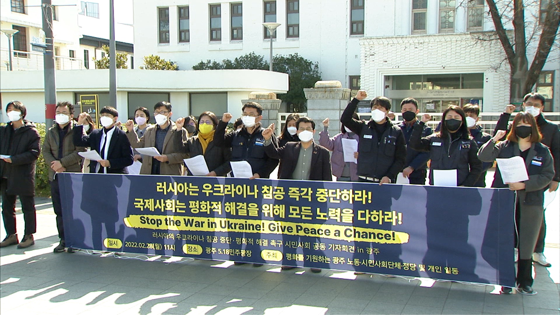 광주지역 시민사회단체들이 러시아의 우크라이나 침공을 규탄하고 평화적인 해결을 촉구했습니다. 사회진보연대 광주전남지부 등 22개 시민사회단체는 5.18 민주광장에서 기자회견을 열어 러시아는 우크라이나 침공을 즉각 중단하고 국제 사회는 우크라이나 국민에 대한 인도적 지원에 나서라고 요구했습니다. 이들 단체는 ...