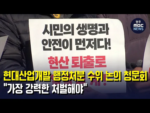 (앵커) 광주 학동 참사가 발생한 지 8개월 만에 현대산업개발에 대한 영업정지 행정처분 여부를 결정할 청문회가 서울시에서 열렸습니다. 시민사회 단체는 서울을 찾아 잇따라 참사를 낸 현대산업개발의 업계 퇴출을 요구했습니다. 우종훈 기자의 보도입니다.(기자) 철거 중이던 건물이 무너져 시내 버스에 타고 있던 17명...